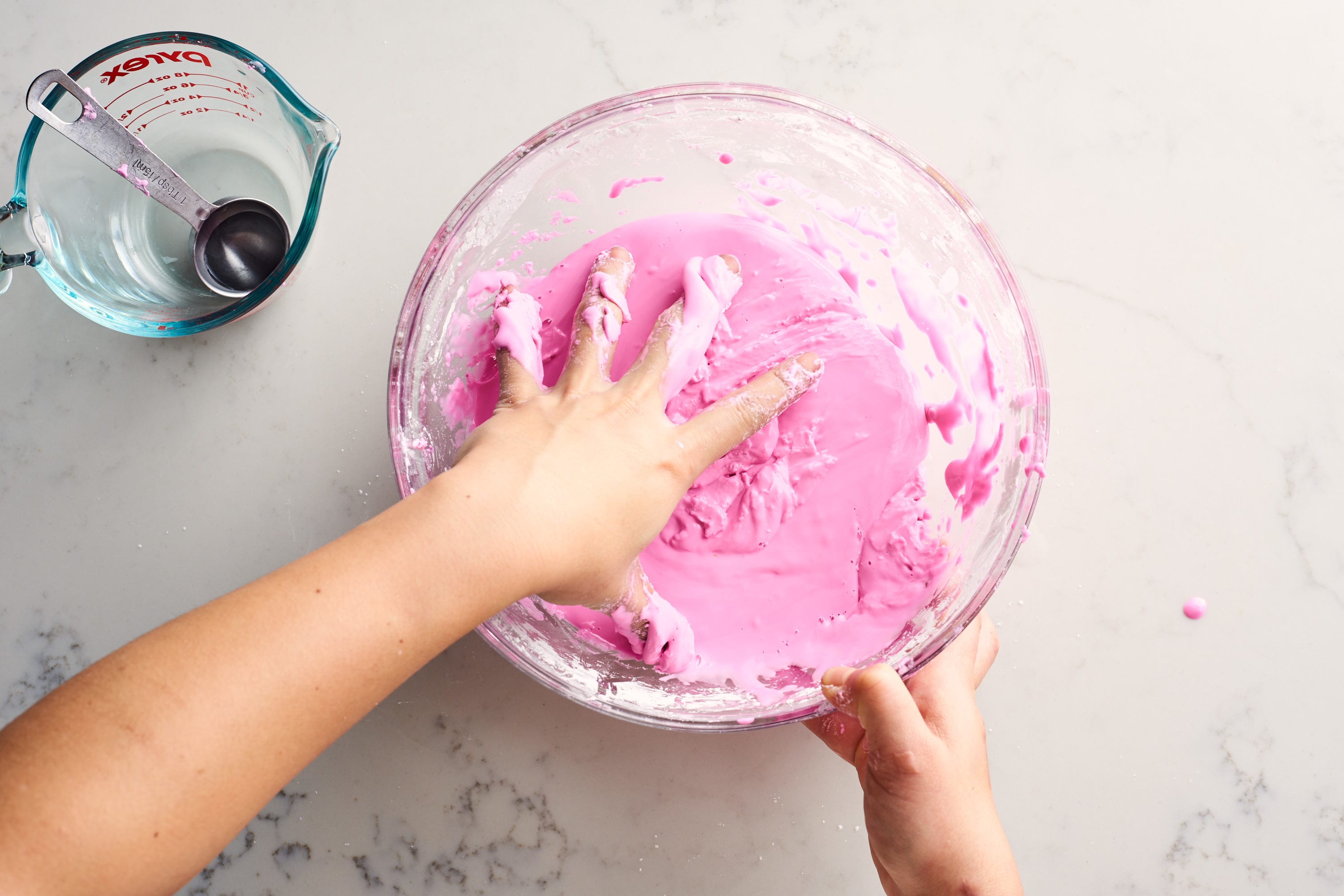=) or make some soup. Add about 1 cup (8 ounces) of glue to your mixing bowl. After a few hours, remove the slime from the freezer.