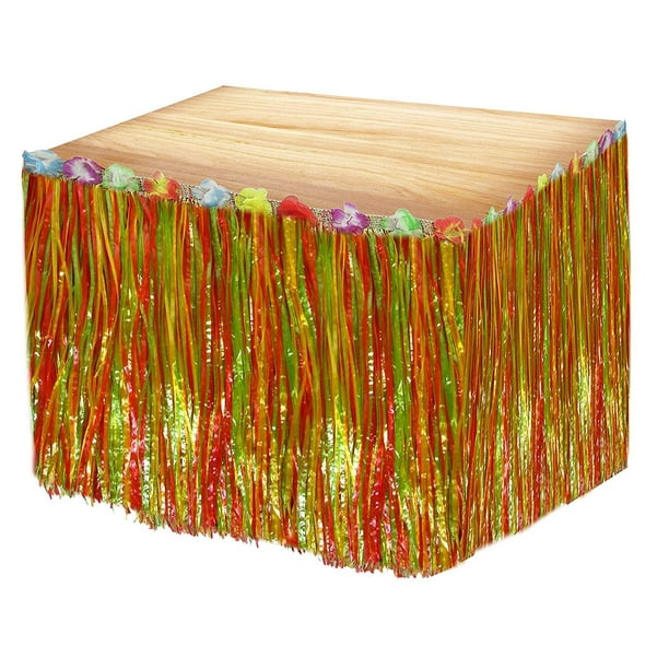 Metallic, tissue and raffia fringe skirts have a number of imaginative uses. This table skirt is an adorable way to cover unsightly table legs at your party. Border a room, use as bed or table skirting, decorate your own tiki bar!